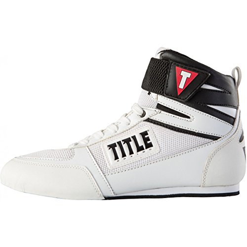 Studio : TITLE Boxing Publisher : TITLE Boxing Binding : Misc. Product Description An amazing lightweight blend of select leather synthetic upper with a masterful interweave of brilliant double nylon mesh befitting of champions at every level. Elite 6" height and ultra-featherweight are crafted for intense speed, while a full length double lasted mid-sole provides forefoot, heel and ankle support. Poly-rubber zig-zag soles offer quick and speedy footwork and deliver pin-point pivots and a solid foundation. Elastic lace cover with a rubber end tab on the front ankle keeps laces intact and out of the way during battle. Inner-dispersed dazzle mesh in strategic low stress locations allow for air flow ventilation and help keep athlete cooler and drier during competition. Full length padded mesh tongue and arch supports for added comfort. Embossed labeling, rubber accents and quality prints finish these champions in style. 0