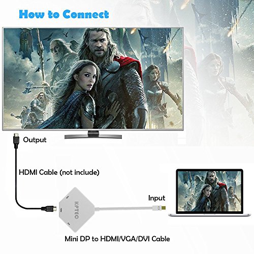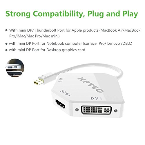 KPTEC Mini DisplayPort (Thunderbolt) to HDMI DVI VGA Adapter - White