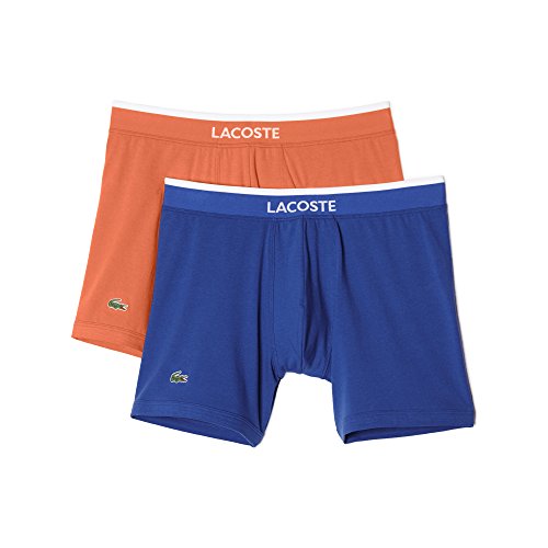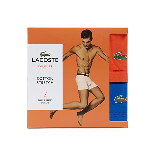 Lacoste Men's 2-Pack Colours Collection Cotton Stretch Fit Boxer Briefs, Nasturitium/Victoria, Small