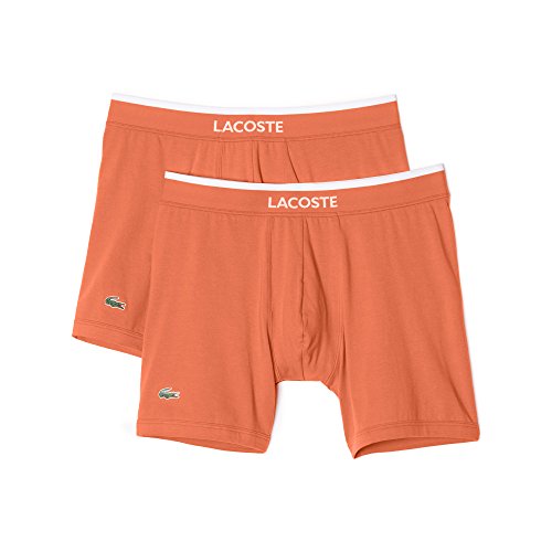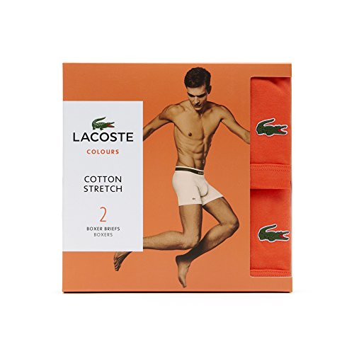 Lacoste Men's 2-Pack Colours Collection Cotton Stretch Fit Boxer Briefs, Nasturitium Orange, Small