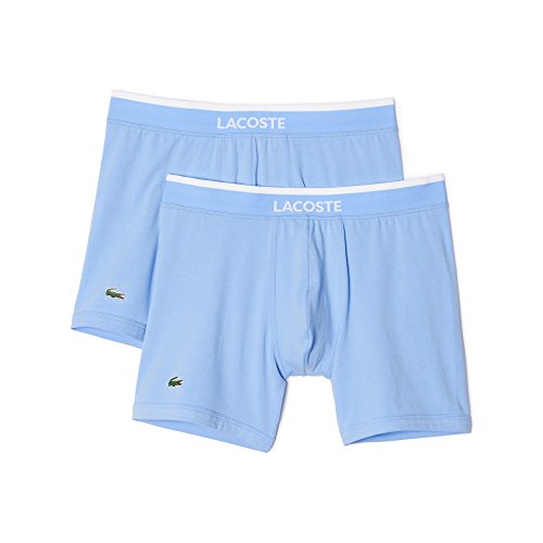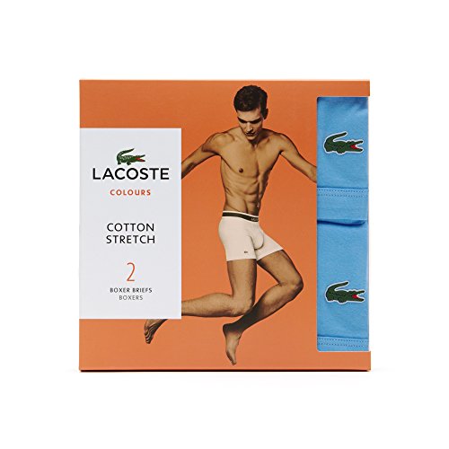 Lacoste Men's 2-Pack Colours Collection Cotton Stretch Fit Boxer Briefs, Light Blue, Small