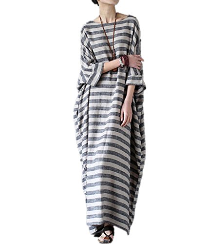 Fabric: 30% Linen and 70% Cotton (soft and comfortable); Neckline: 'O' Neck; Sleeve: 3/4 Sleeve (the cuff is striped vertically); Closure Type: Pullover; Side Pockets.