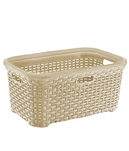 -. Feature : 50 Liter / 1.40 Bushel / High quality durable plastic / Decorative basket-weave design / Smooth finished trim and interior preventing from snagging delicate items / Matching laundry hampers, trash bins, toilet brushes and step stools available