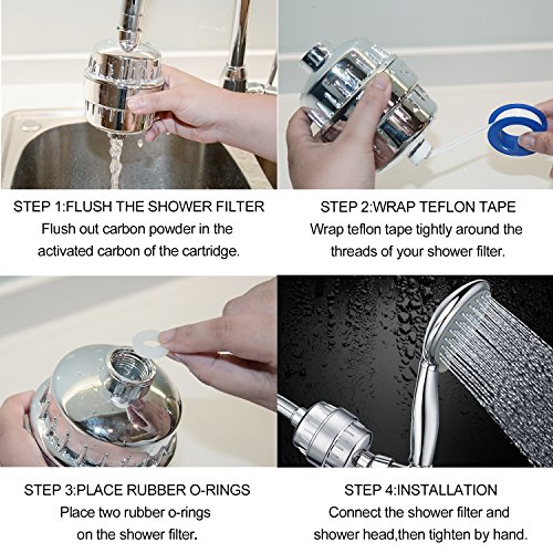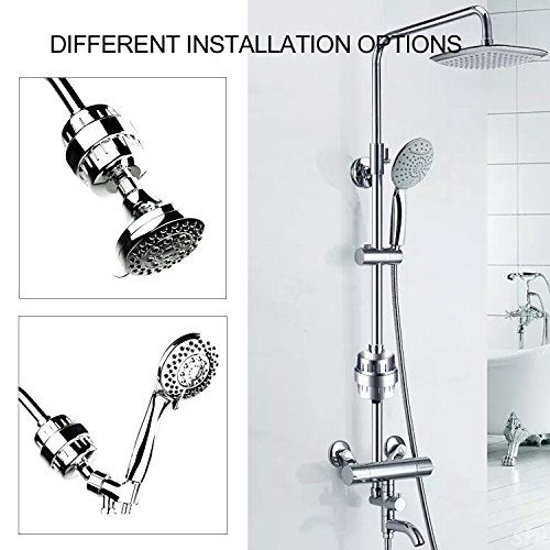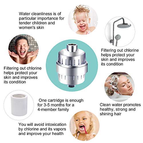 - WATER PURIFICATION - The shower water filter PURIFIES your shower water, trapping chlorine, heavy metals, bacterias, pesticides, inhibits the growth of scale, algae, fungi, zinc, copper and mold.