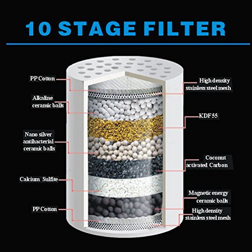 - 10-STAGE FILTRATION - Perfect combination of KDF 55, calcium sulfite, activated carbon, medical stone, and other filtering materials ensures best effect of water quality purification.