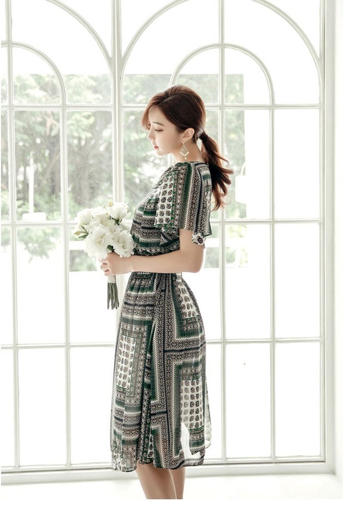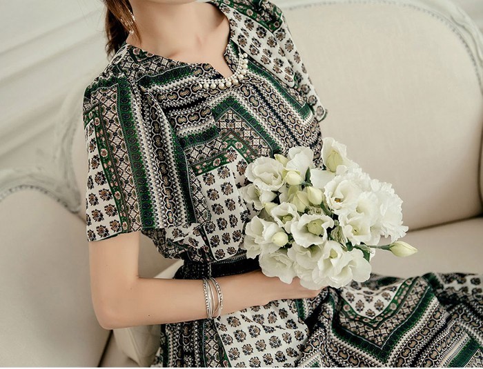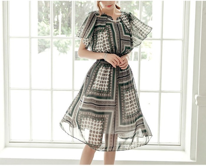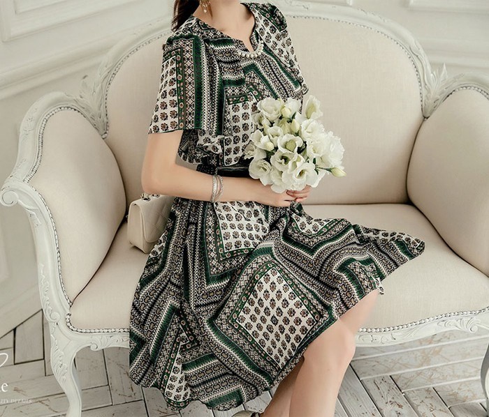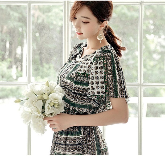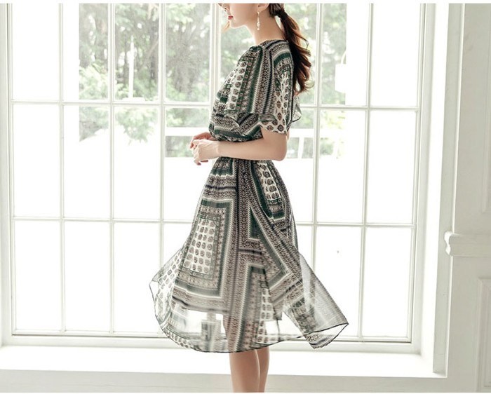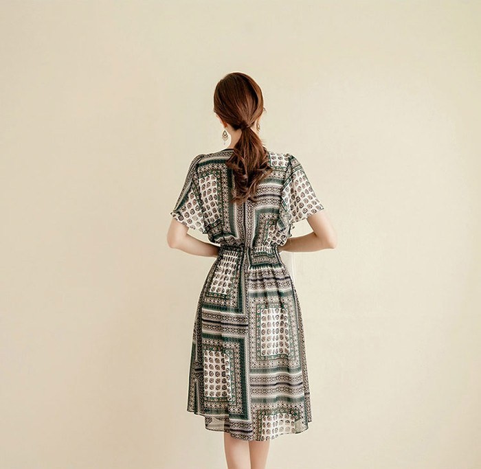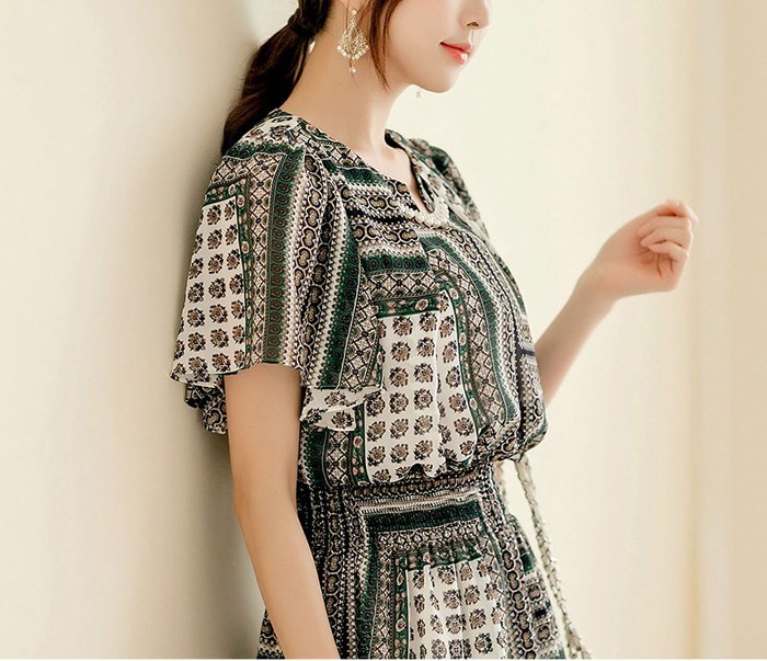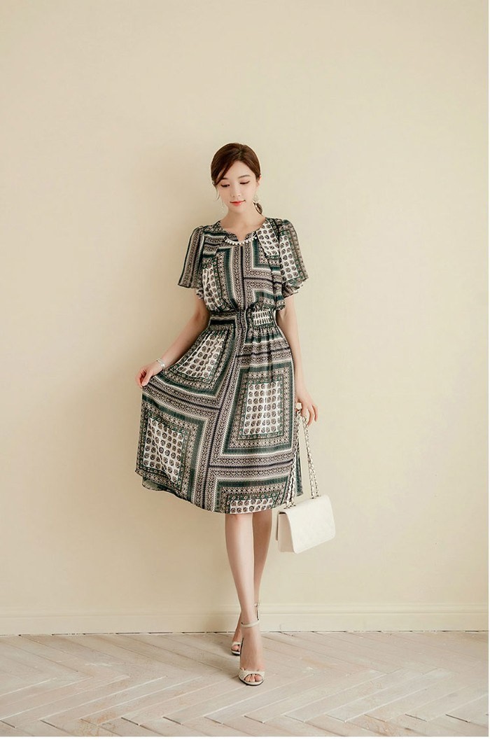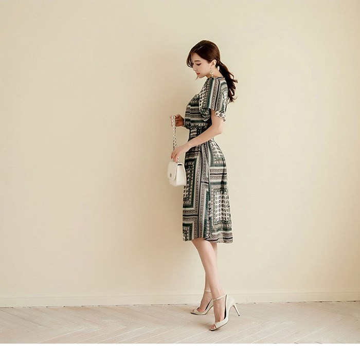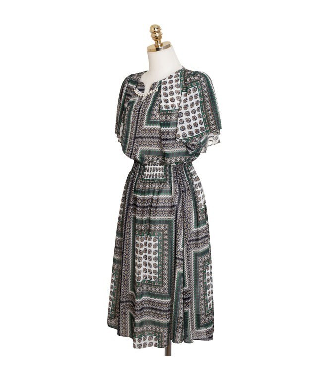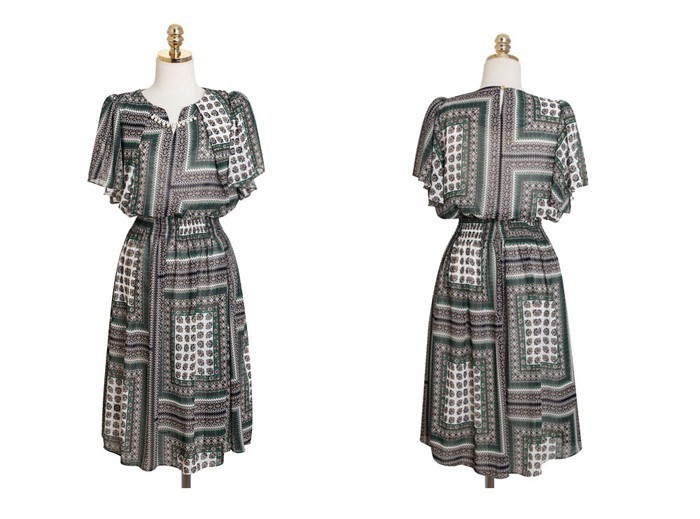 商品名:ワンピース 膝丈 柄 半袖