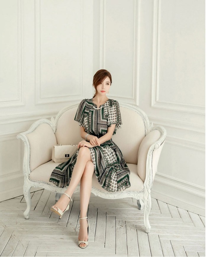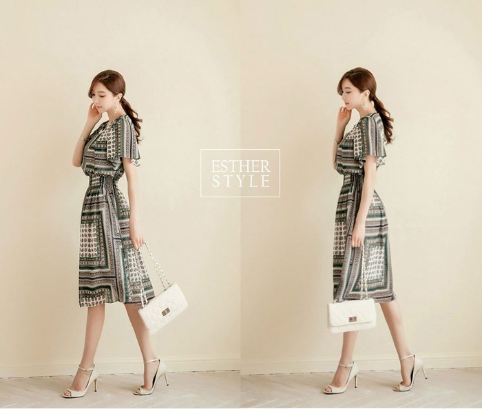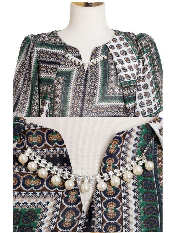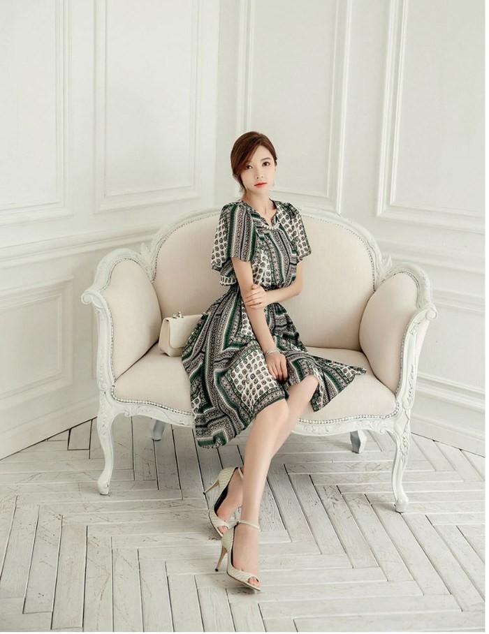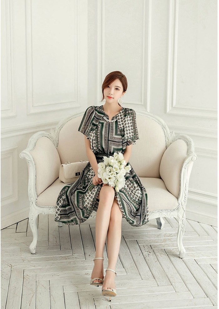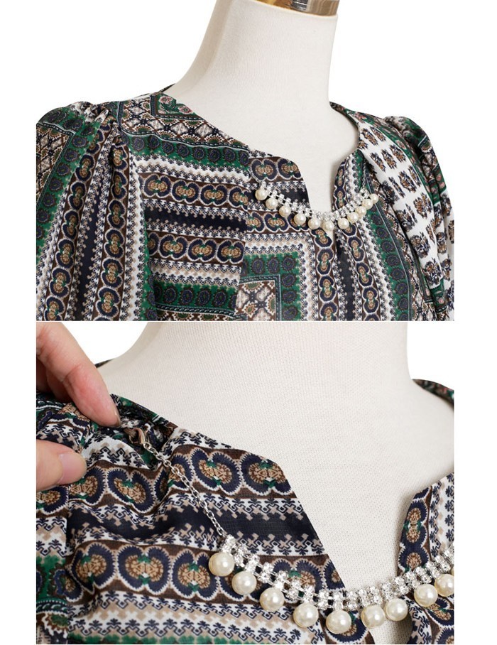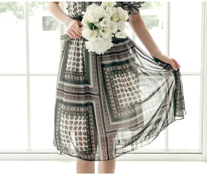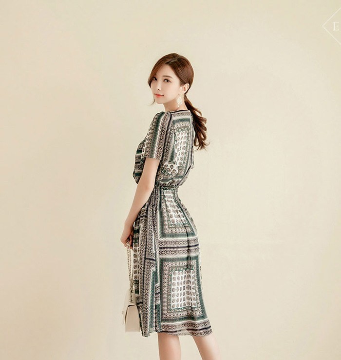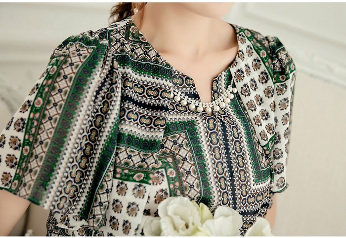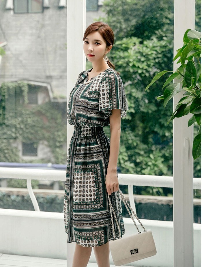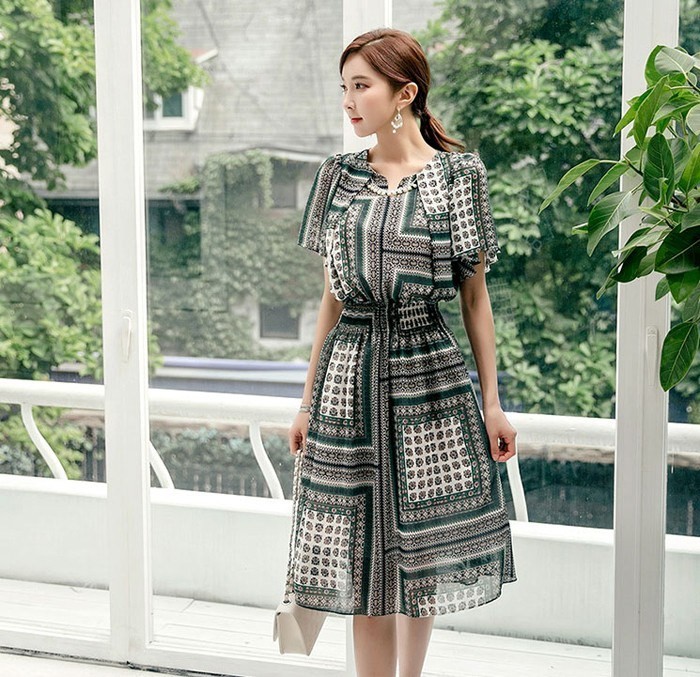 商品名:ワンピース 膝丈 柄 半袖