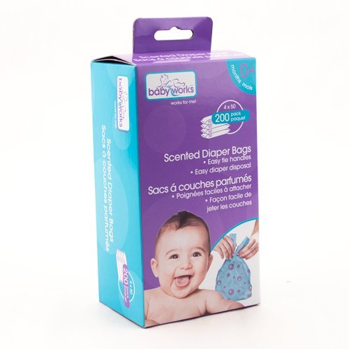 Baby Works 200 Piece Disposable Scented Diaper Bags with Easy-Tie Handles