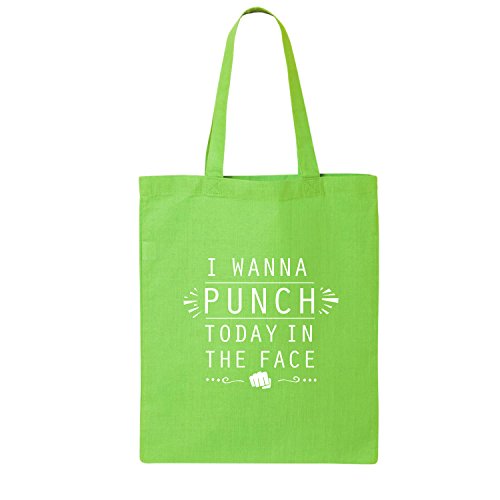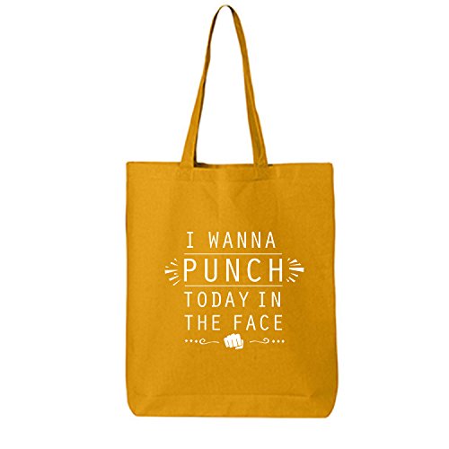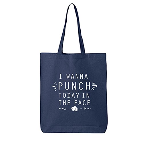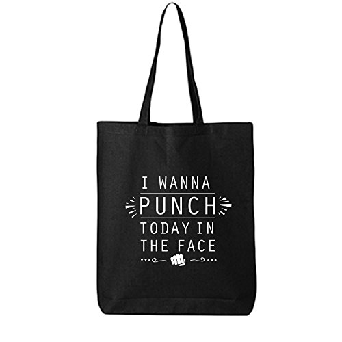 Product Description This cotton canvas tote bag features "I WANNA PUNCH TODAY IN THE FACE" on the front. 15" Wide x 16" High x 3" Deep with 20" handles. Printed in the USA on an imported bag. 0