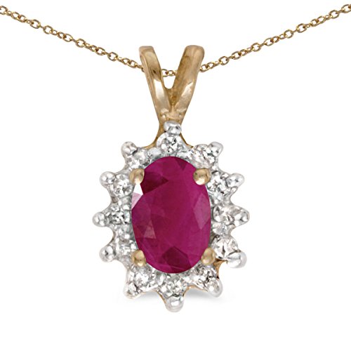 -. Title : 14k Yellow Gold Oval Ruby And Diamond Pendant with 18" Chain
