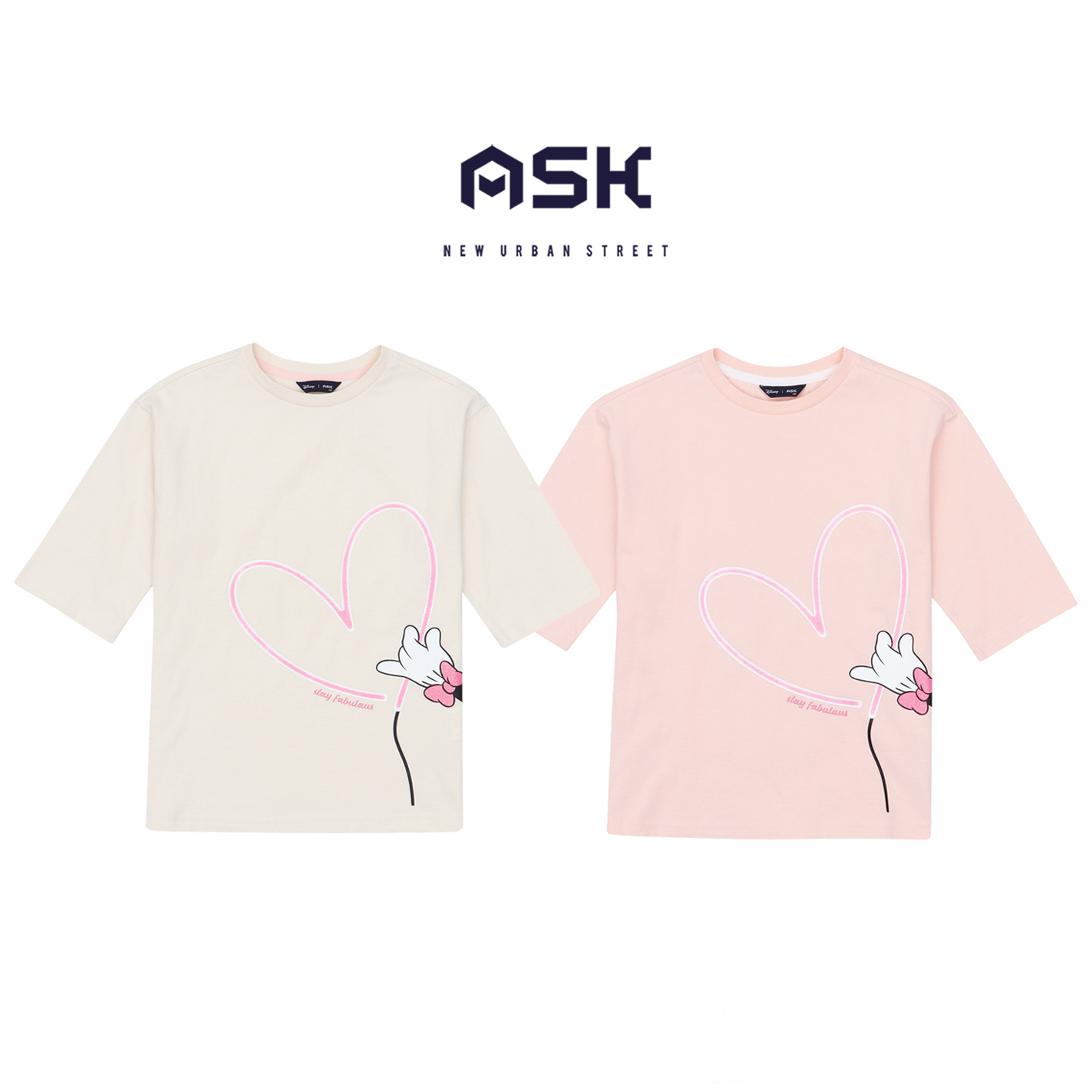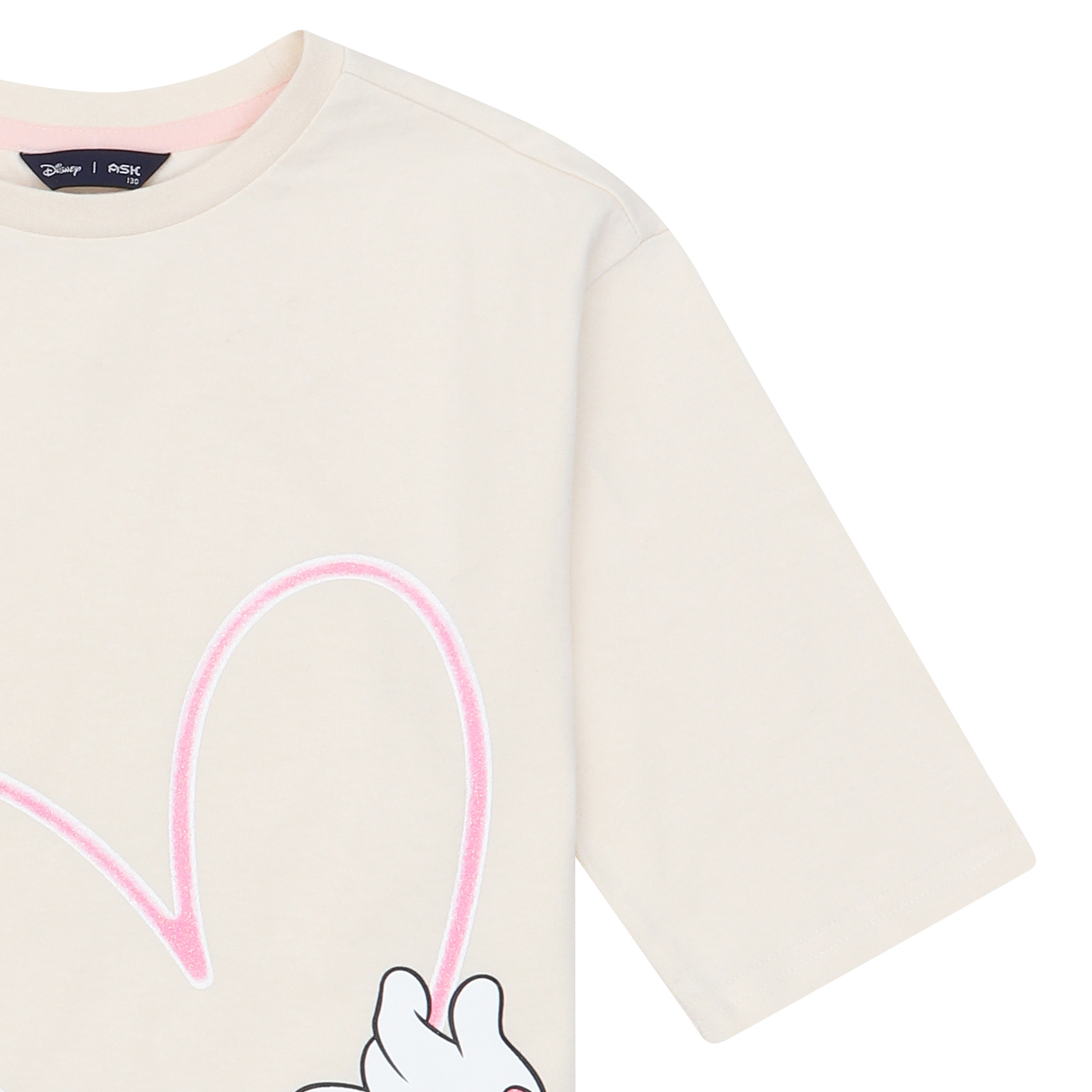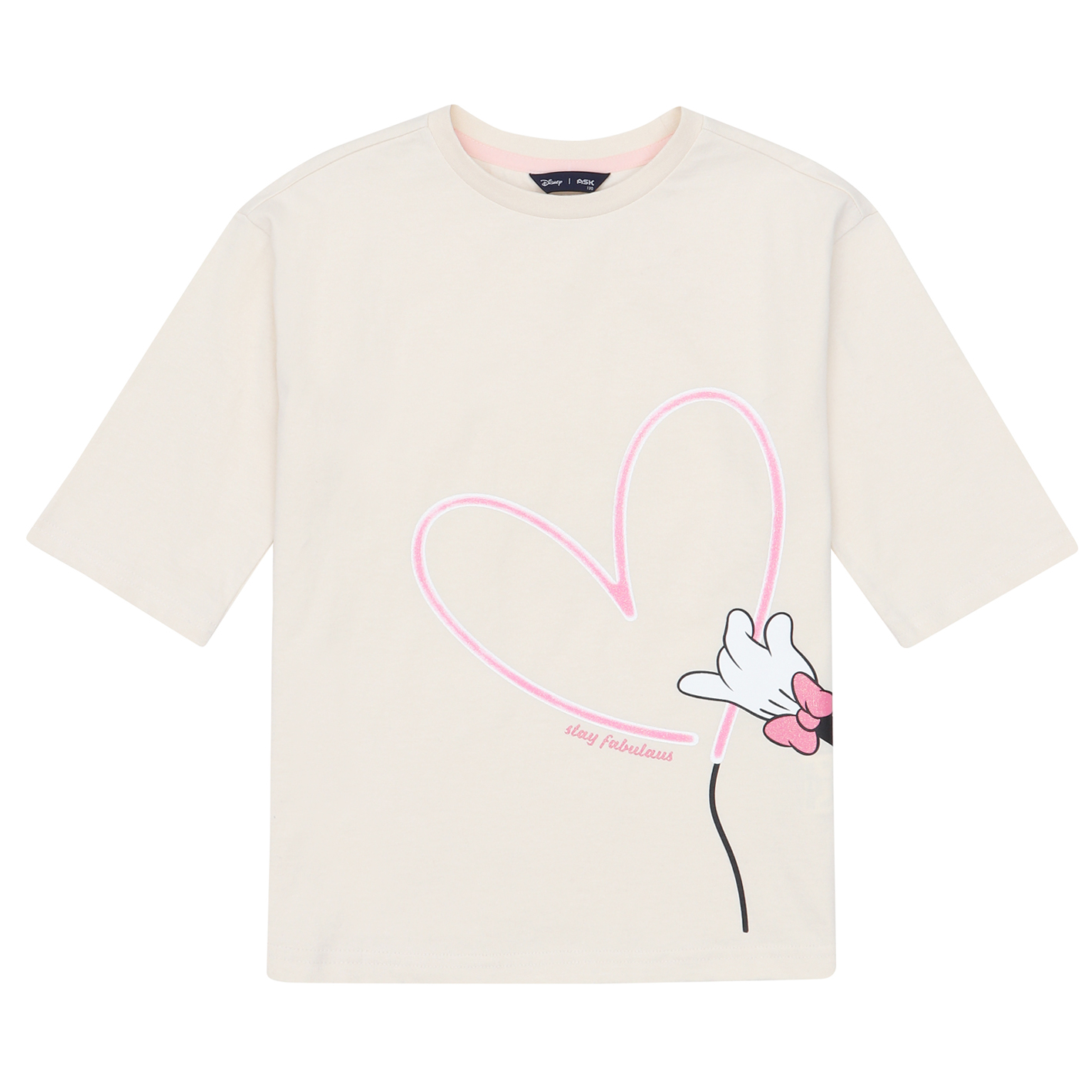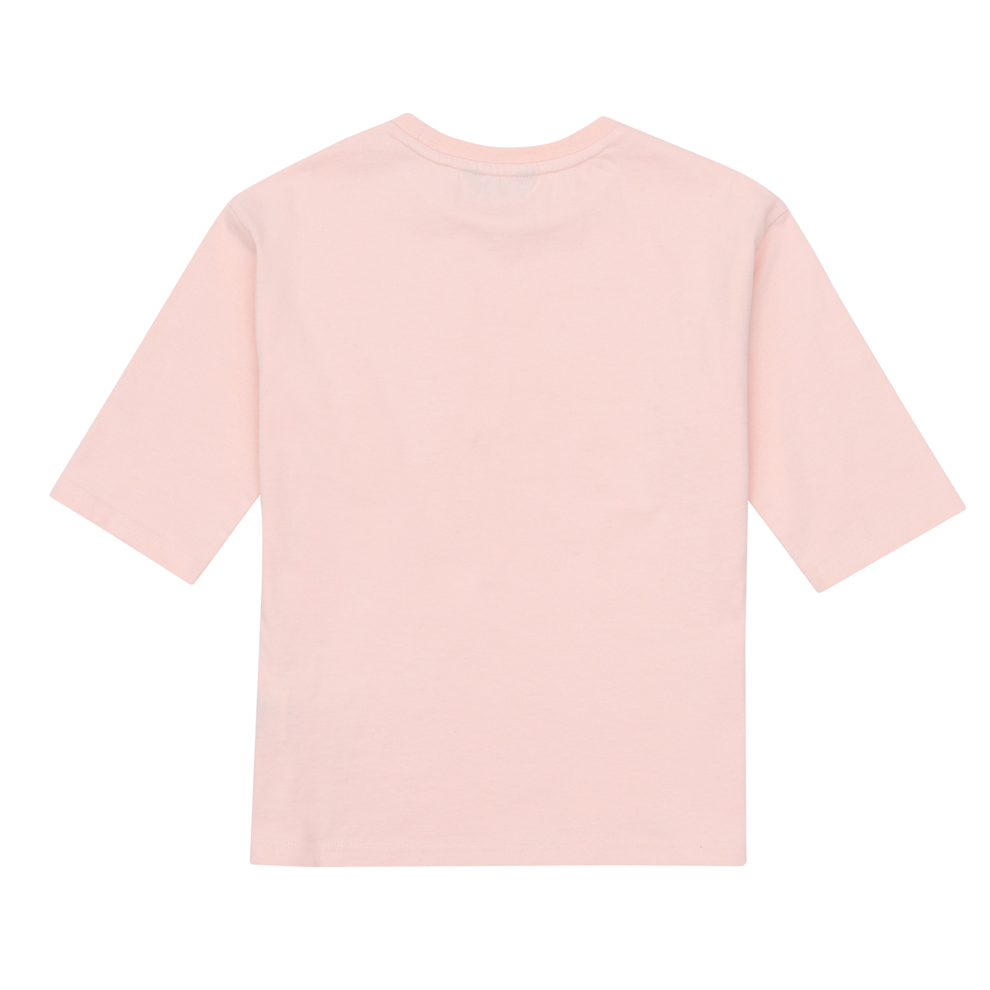5부소매의 루즈핏 티셔츠  여아가 선호하는 실루엣으로 하단에 미니아트웍을  포인트로 준 아이템.