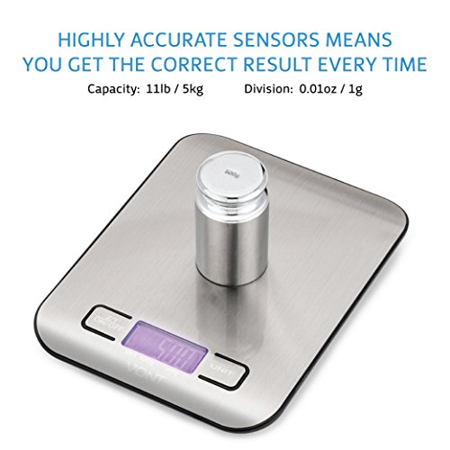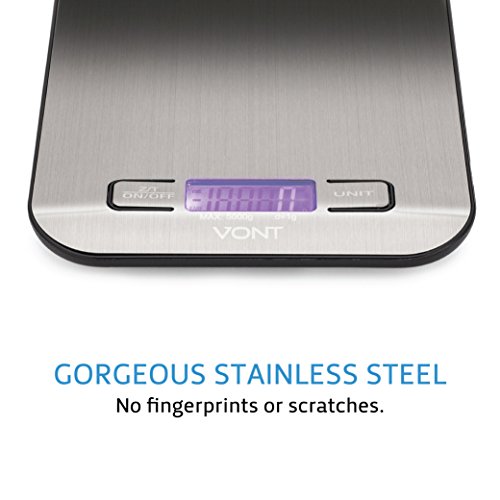STAINLESS STEEL: Designed with high quality stainless steel. The scale will give your kitchen a sleek, modern look. That also means cleaning and maintenance is super easy.