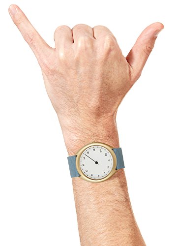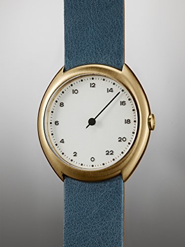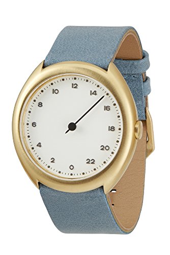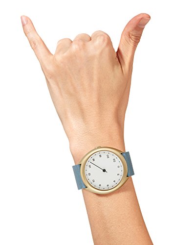 slow O 13 - Swiss Made one-hand 24 hour watch - Gold with light blue leather band