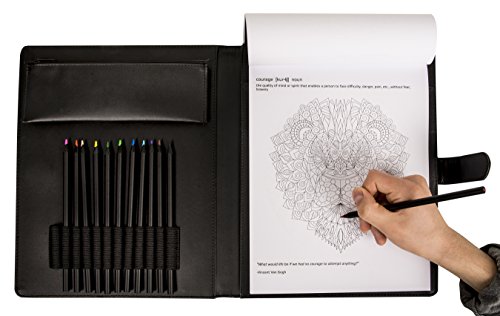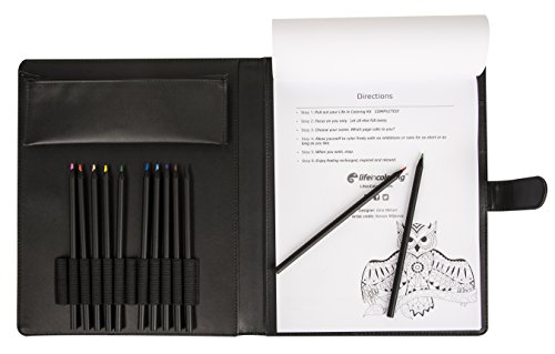 Complete Adult Coloring Book Kit by Life in Coloring. Set includes Elegant Portable Refillable Travel Carrying Case features Inspirational Quotes book , colored pencils , Sharpener, Supplies pouch