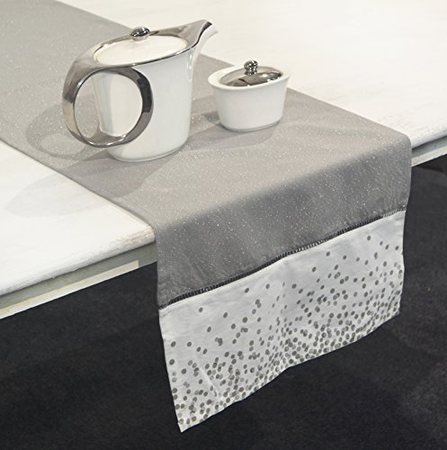 -. Feature : Product content: 1 table runner , 100% Cotton / Design detail - Silver metallic P.R.Int polka dot on border with lurex yarn in centre and ladder lace. / Size 16 inches x 60 inches, rectangle shape / Gentle machine wash, Do not bleach, low iron as needed. Designed in France; Made in India. / Suitable for everyday use, Dinner table, Outdoor Picnics, Thanksgiving, Christmas, Parties, Dinners, Weddings, Restaurants and Special Occasions. Please allow 1-3cm errors due to manual measurement! All pictures are taken by real items, the color may slightly darker or lighter due to the different computers display or camera exposure, please understand!
