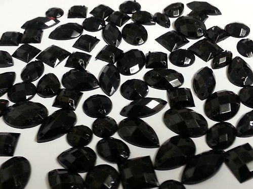 CraftbuddyUS 80 Black Faceted Acrylic Sew On, Stick on Diamante Crystal Rhinestone Gems