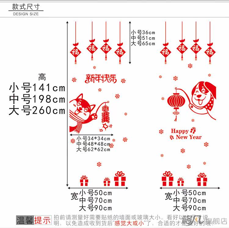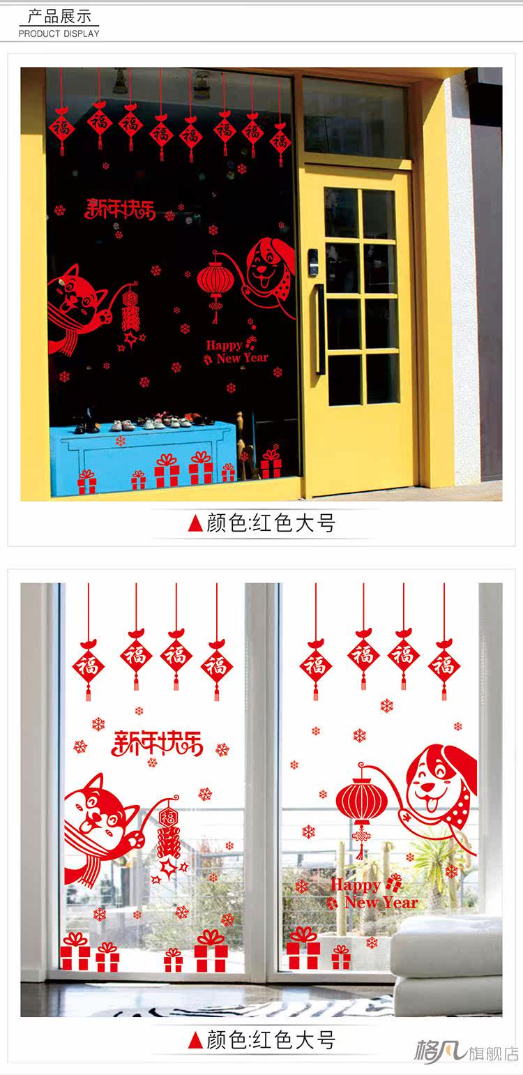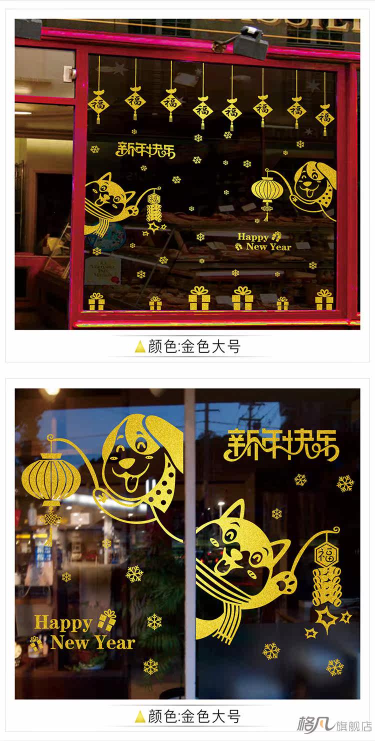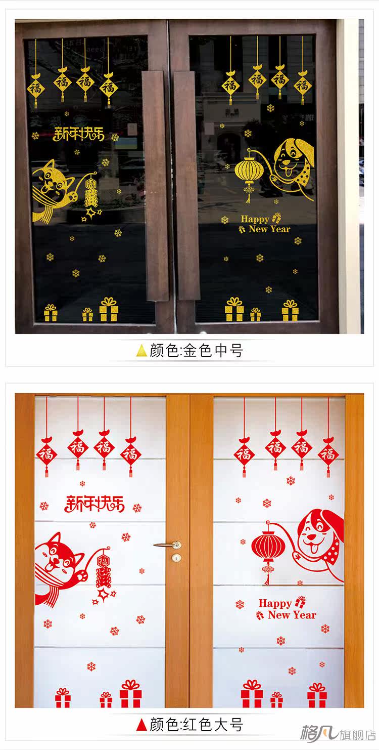 元旦新年小狗墙贴纸春节装饰品过年店铺玻璃窗花贴门贴画