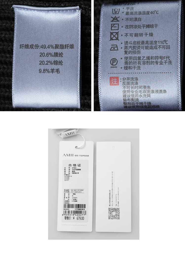 | 面料成分: | 49.4%聚酯纤维、20.6%腈纶、20.2%锦纶、9.8%羊毛 |