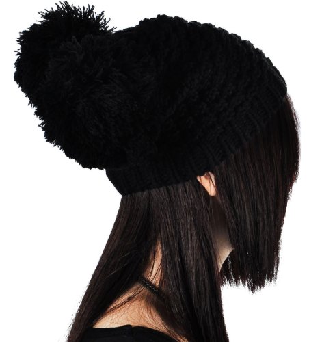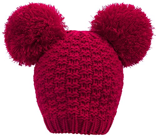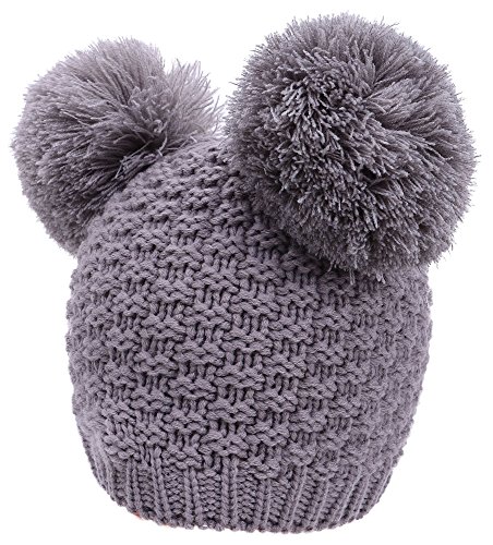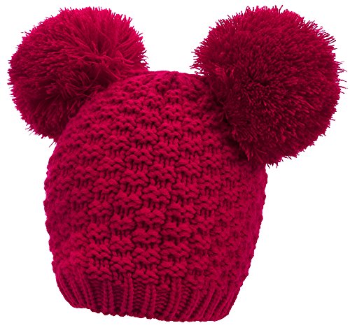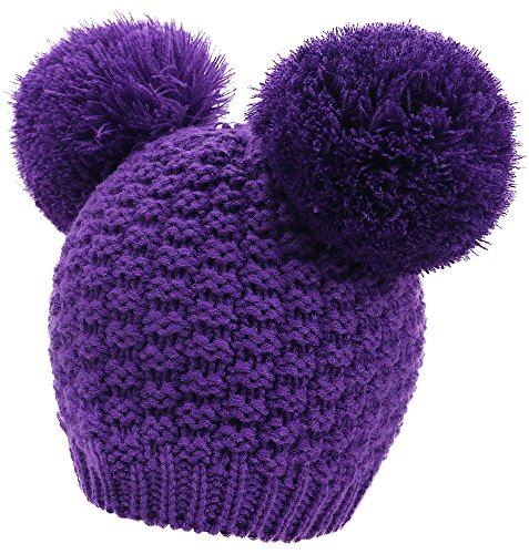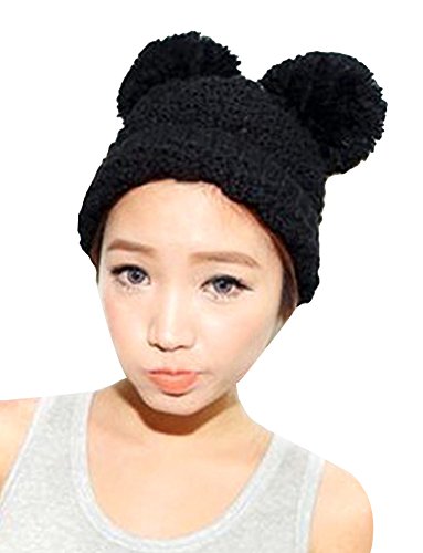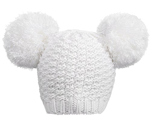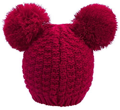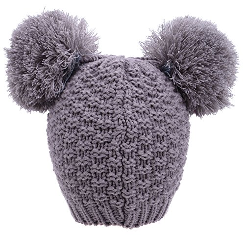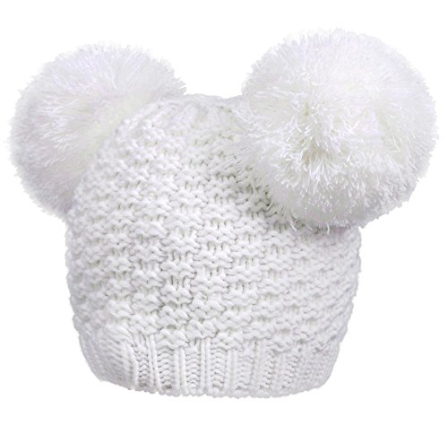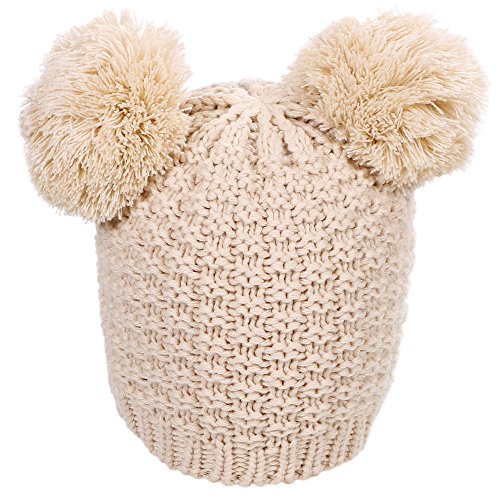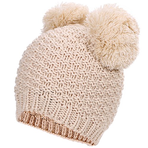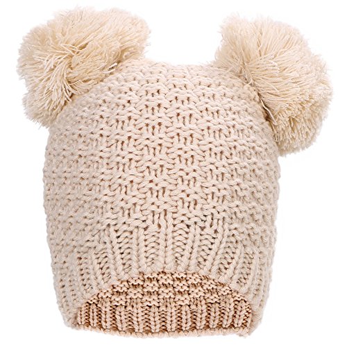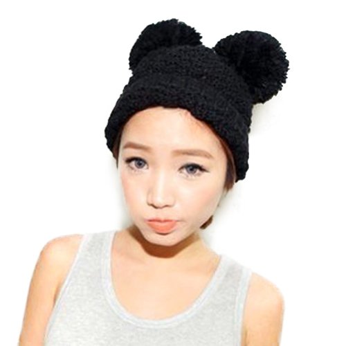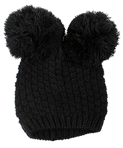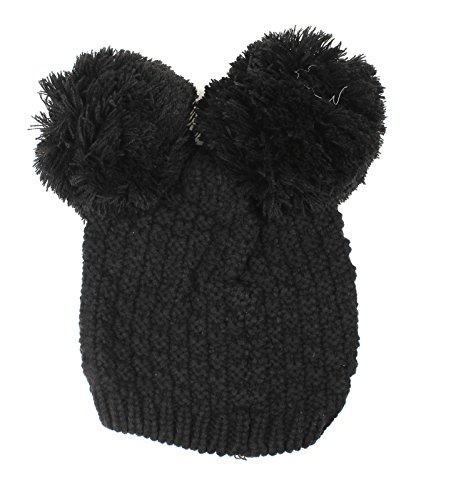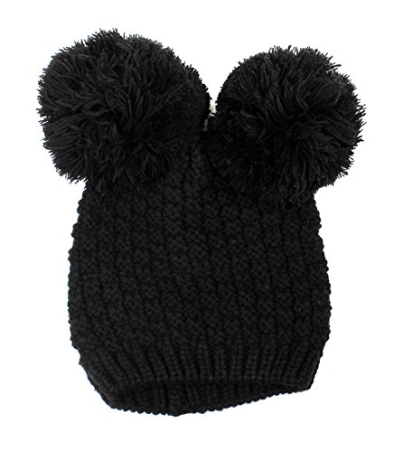 Product Description Beanie hat with double pom pom Super toasty, soft, and stretchy Our warm wooly knit caps are super adorable and will get you looking forward to winter Here's something we learned: throw an extra pom pom on a bobble cap and you get this cute "eared" look.