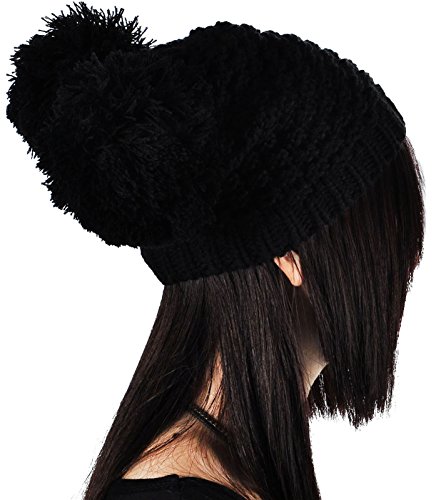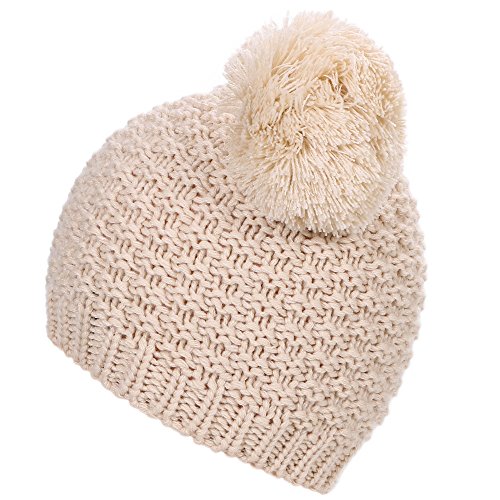 Women's Warm Wooly Knit Bobble Beanie Hats Caps for Winter, One Size