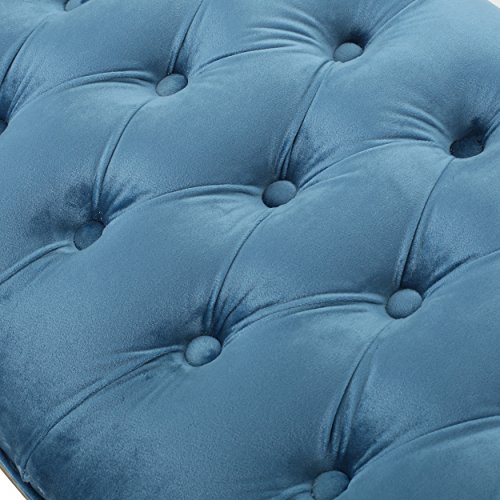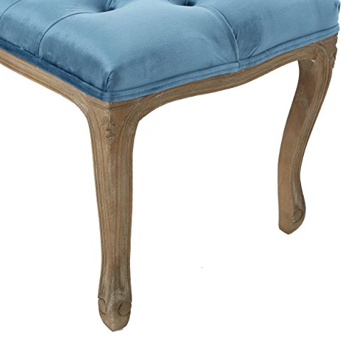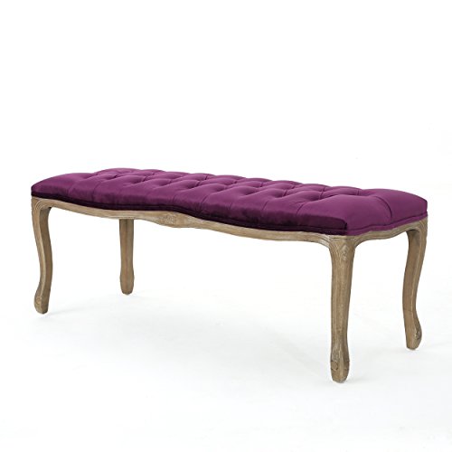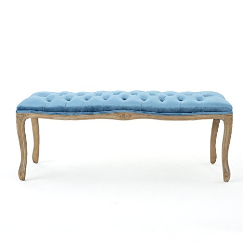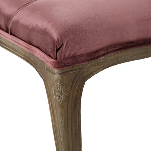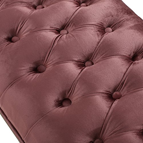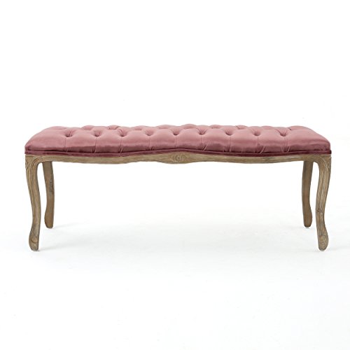 -. Brand : GDF Studio -. Feature : This tufted bench is an elegant addition to any room in your home. With plush upholstery and delicately detailed legs, this bench offers a regal touch to the modern day home. / Includes: One (1) Bench / Dimensions: 16.75"D x 49.50"W x 17.50"H / Material: New Velvet | Colors available in: Blush, Aqua, or Eggplant / Frame Material: Rubberwood | Frame Finish: Natural | No Assembly Required -. Label : GDFStudio -. Manufacturer : GDFStudio -. ProductGroup : Furniture -. ProductTypeName : HOME_FURNITURE_AND_DECOR -. Publisher : GDFStudio -. Studio : GDFStudio -. Title : Talia Elegant Tufted New Velvet Blush Cushion Bench