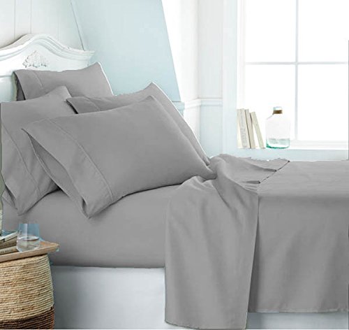 Casa Copenhagen Eternal Collection 500 Thread-Count Egyptian Cotton 4 pieces King Bed Sheet Pillow Case Set, Light Grey