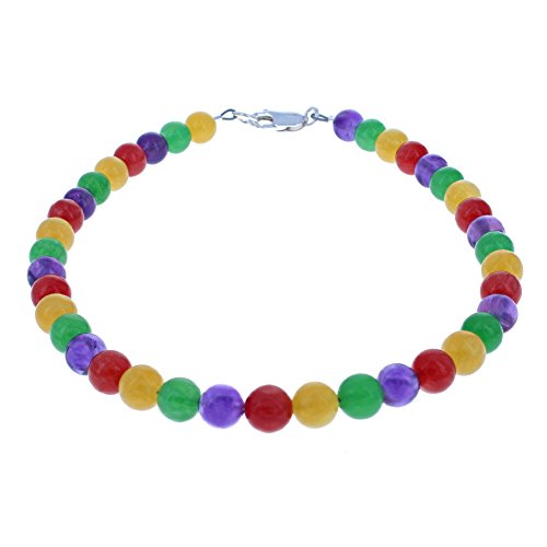 -. Title : Ladies 6mm Amethyst, Multi Color Agate & Sterling Silver Beaded Gemstone Anklet