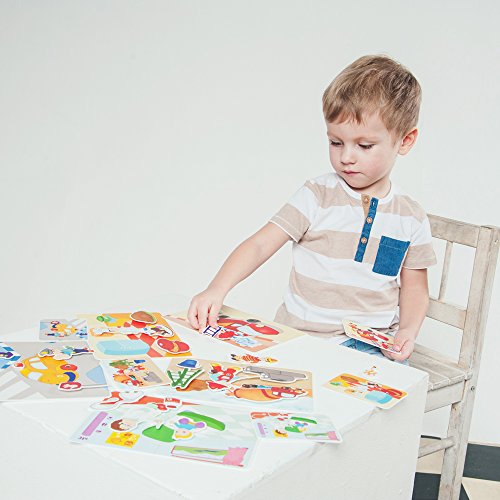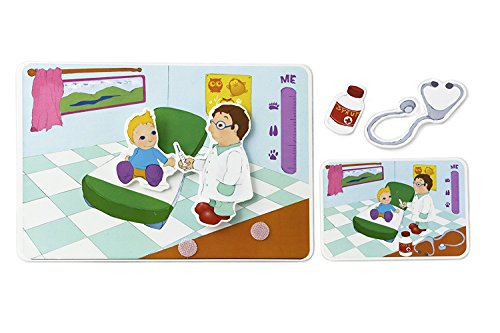 Learning educational game puzzle - velcro consists of 5 boards, by filling which, child discovering the names and atributes of five popular proffessions. Develops the following: logic; shapes and color perception; visual perception; verbal skills; soft motor skills.