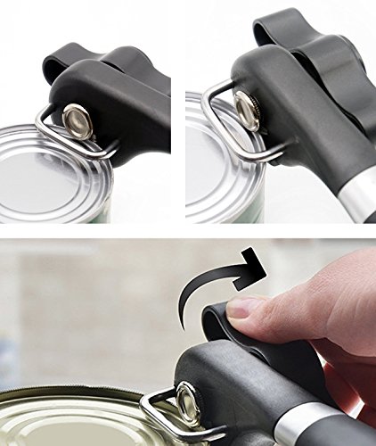 - ★ Side-Cutting, Safe and Hygienic: 360 degree cut, can opener leaves no sharp edge on the lid and cans, the lid can also be re-used, just place the smooth-edge lid back on to the can to store uneaten food. Blades do not come into contact with food in can so there is no risk of contamination and only need to rinse it under running tap water then leave it dry
