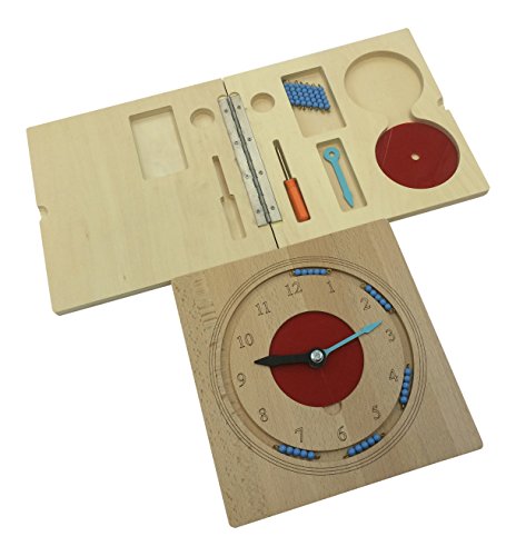 Teach time incorporating clock hands, fraction circles, and skip counting with bead bars. Children build and manipulate the clock.Items Included: 12 blue 5 bead bars, Screwdriver,3 clock hands, 2 fraction inset, 1 case holder