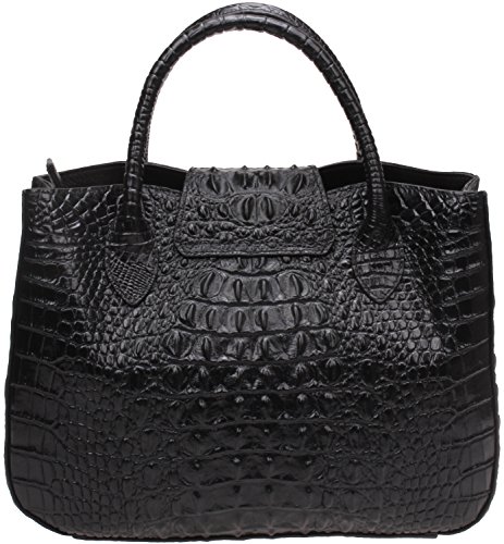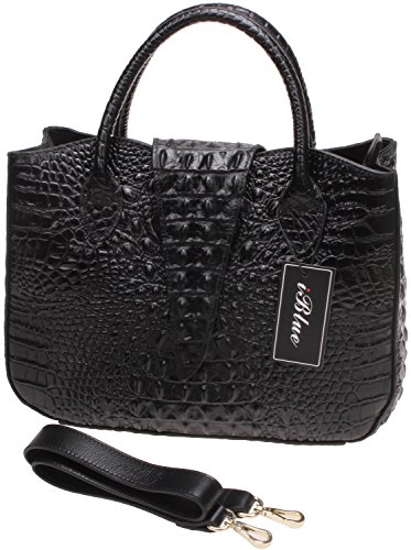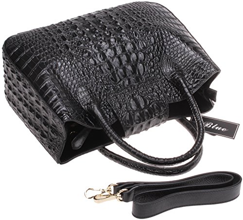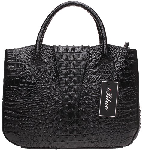 Iblue Women Crocodile Leather Office Top Handle Tote Shoulder Bag Satchel Purse 13 in #W201 (L, black)