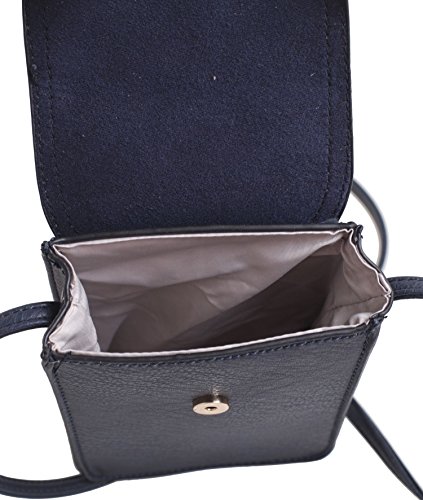 - Interior features a spacious compartment with a bonus clutch and phone pouch.