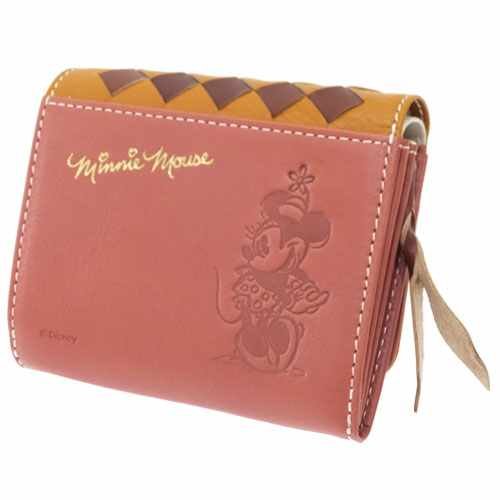 -. Title : ミニーマウス[レザーショートウォレット]メッシュ二つ折り財布/型押し/ブラウン×ピンク ディズニー