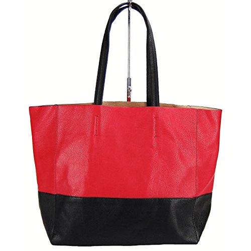 Trendiger 'Bag in Bag' Shopper in sportlichem Look von dem neuen Trandlabel HERISSON FIRENZE aus weichem Lederimitat in hervorragender Qualität in 3 Farben: rot-schwarz, braun-schwarz oder schwarz-lila.