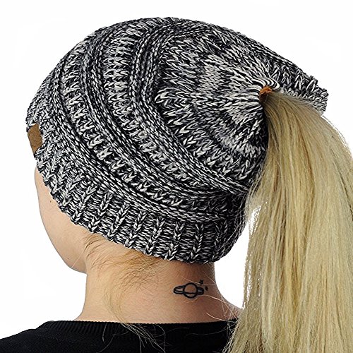 (TheFound)/Accessories/Hats/DIRECT FROM USA/Women Winter Warm Knitted Ponytail Beanie Hat Messy High Bun Stretch Ribbed Cap