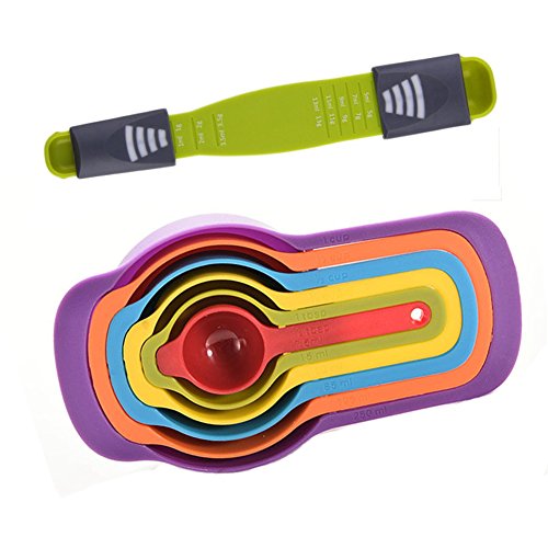 Measuring Spoons,Set of 7 for Measuring Dry and Liquid Ingredients,Including An Adjustable Measuring Spoon,Multi-Color
