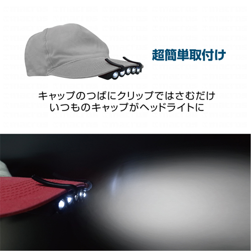 ●キャップのツバにクリップで挟むだけ!いつものキャップがヘッドライトに!