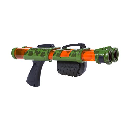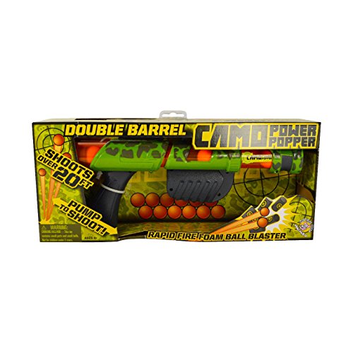 Studio : Hog Wild Publisher : Hog Wild Binding : Toy Product Description The Camo Double Barrel Popper is the big daddy that fires 18 soft foam balls in rapid succession with two times the firepower! The soft foam balls don't hurt and make it a great indoor or outdoor product. Pump action - the quicker you pump, the faster and further the balls shoot. Shooting two balls at a time, it's the ultimate in double-barrel fun! Shoots up to 20 feet! 0