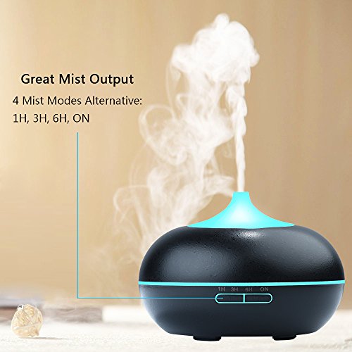 5 in 1 multi-function: humidifier + aroma diffuser + air purifier + ionizer + decorating night light. Large capacity and great mist output, holds up to 300ml water and runs continuously for 10 hours