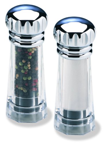 [Product Information]- 5" pepper mill and salt shaker. Brushed nickel plated.
