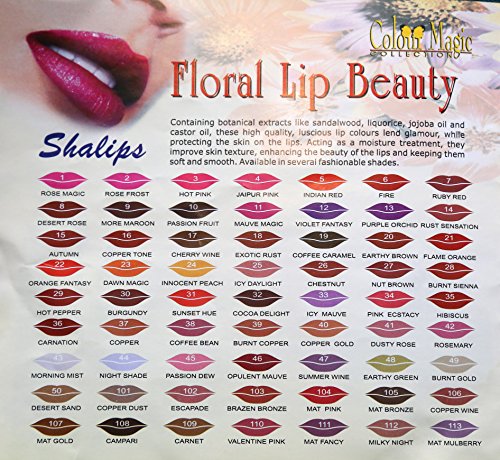 Containing natural moisturizers and emollients, the Shalips lipstick nourishes the delicate skin of the lip, keeping them soft and smooth. A total moisture treatment! Available in 63 shades, both contemporary and timeless.Feature