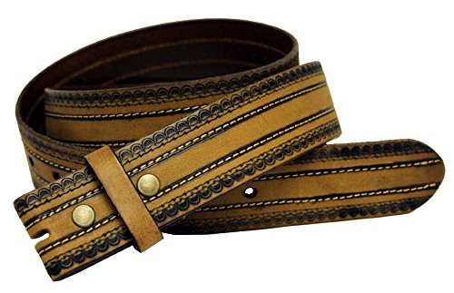 Product Description1.5" wide vintage tooled genuine cowhide leather belt strap with stitching. Belt measured from where the leather ends at the buckle end to the middle hole at the tip end.0