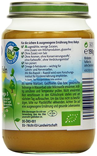 -. Feature : Komplette fein pürierte Mittagsmahlzeit / Mild im Geschmack / Mit Bio-Rapsöl / Allergenarm / Ohne Salzzusatz