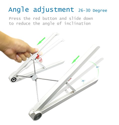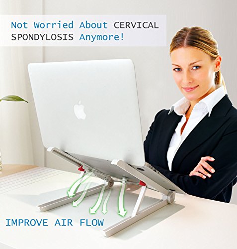-. Feature : High Quality:This computer stand is made of Strengthened nylon,stainless steel and silicone, instead of plastic.As steady as a great rock. provide a steady work environment. / New Ergonomic Design: Our computer holder has long time stoop will cause incurable spinal cord injury, this well designed stand will be a good one to help you correct your posture. Tilt design brings screen closer. / Light Weight & Portable: This laptop holder is designed to improve the Air Flow for MacBook & Laptop computers, and folds to a Compact Size.Light Weight of the Strengthened Nylon stand makes it ideal to carry in a laptop bag. / Perfect Laptop Mate: Our laptop stand is Premium Quality Nylon Stand provides stability for all laptops with screen size from 11 - 17 inches (XLarge silicone pad for big size) / Worry-Free Guarantee: Reliable after-sales service, a monthly replacement, three-year warranty. Simply contact us by mail to 7 X 24 hours support!