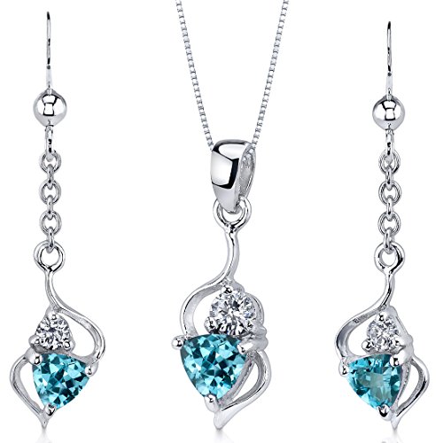 -. Feature : Swiss Blue Topaz, Deep Sky Blue Hue, Brilliant Sparkle / Pendant and Earrings are in .925 Sterling Silver and finished with Rhodium / Top Quality Craftsmanship / Exceptional Styling / 30 Day Return Policy