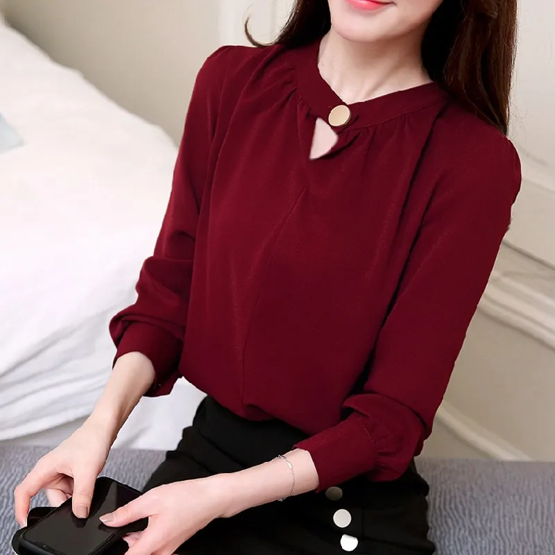 :2018 Women Tops And Blouses Spring Long Sleeve Chiffon Blouse