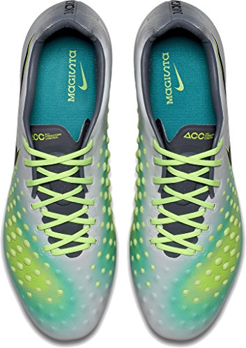 Product Description Amplify your playmaking in Men's Nike Magista Opus II (FG) Firm-Ground Football Boot. The hybrid tongue ensures a consistent close fit while a 3-D texture on key areas of the boot provides targeted friction for a precise touch. The forefoot rotational zone has circular traction for quick turns, and notched heel studs add braking power. 0
