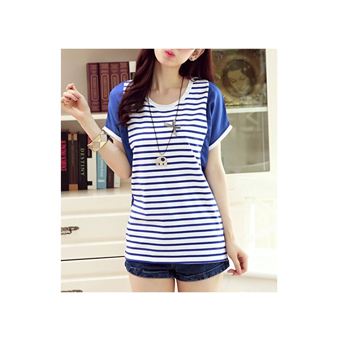 원본상품명: 【MIKA&MAYA】 半袖 Tシャツ ドルマン ボダ カジュアル ロング丈 レディス シャツ (ブル XL)