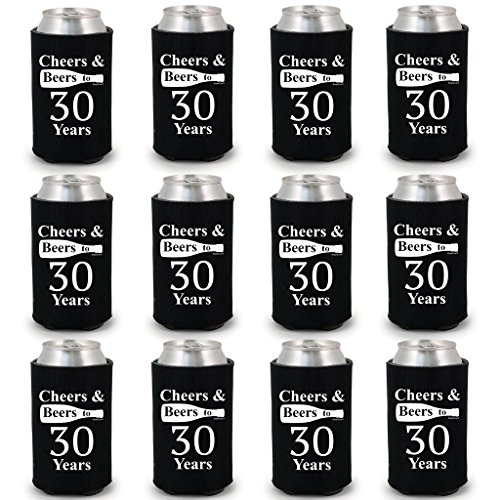 (Shop4Ever)/Pet Supplies/Carriers Travel Accessories/DIRECT FROM USA/Shop4Ever Cheers Beers to 30 Years Can Coolie Birthday Drink Coolers Coolies Black - 12 Pack
