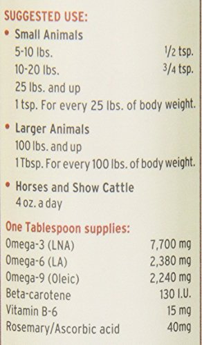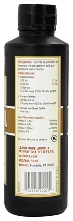 -. Binding : Misc. -. Brand : Barlean's -. Department : Pet Care -. EAN : 0705875200011 -. Feature : Disclaimer: This website is for informational purposes only. Always check the actual product label in your possession for the most accurate ingredient information due to product changes or upgrades that may not yet be reflected on our web site. These statements made in this website have not been evaluated by the Food and Drug Administration. The products offered are not intended to diagnose, treat -. IsAdultProduct : 0 -. IsAutographed : 0 -. IsMemorabilia : 0 -. Label : Barlean's -. LegalDisclaimer : * These statements have not been evaluated by the Food and Drug Administration. This product is not intended to diagnose, treat, cure or prevent any disease. ** Always refer to the manufacturer's label on the product for description, recommended dose and precautions. -. Manufacturer : Barlean's -. Model : 705875200011 -. MPN : 705875200011 -. NumberOfItems : 1 -. PackageQuantity : 1 -. PartNumber : 705875200011 -. ProductGroup : Pet Products -. ProductTypeName : PET_SUPPLIES -. Publisher : Barlean's -. Size : 12 oz -. Studio : Barlean's -. Title : Flax Oil For Animals - 12 oz - Liquid -. UPC : 671213515249